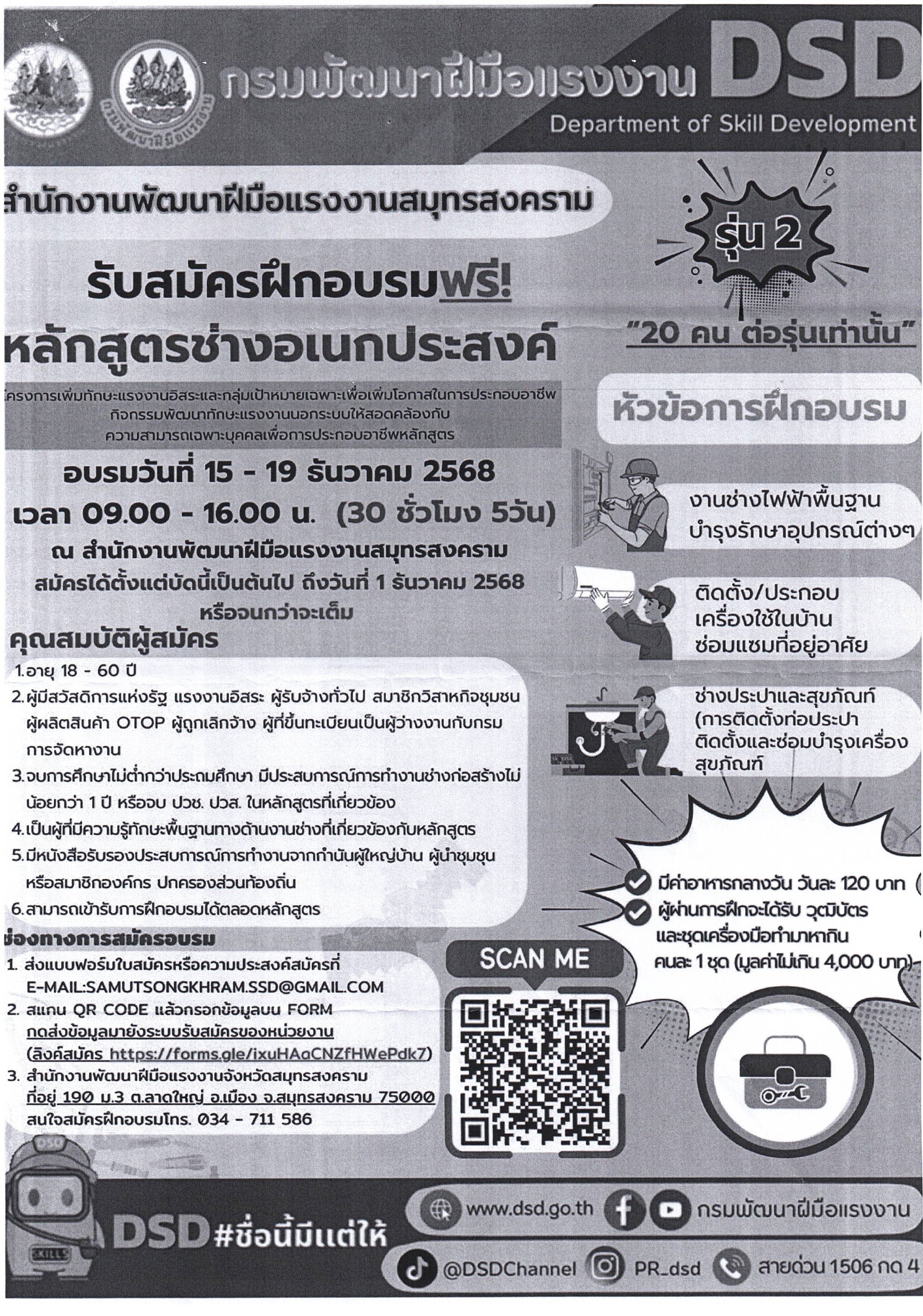 ประชาสัมพันธ์รับสมัครฝึกอบรมหลักสูตรช่างอเนกประสงค์