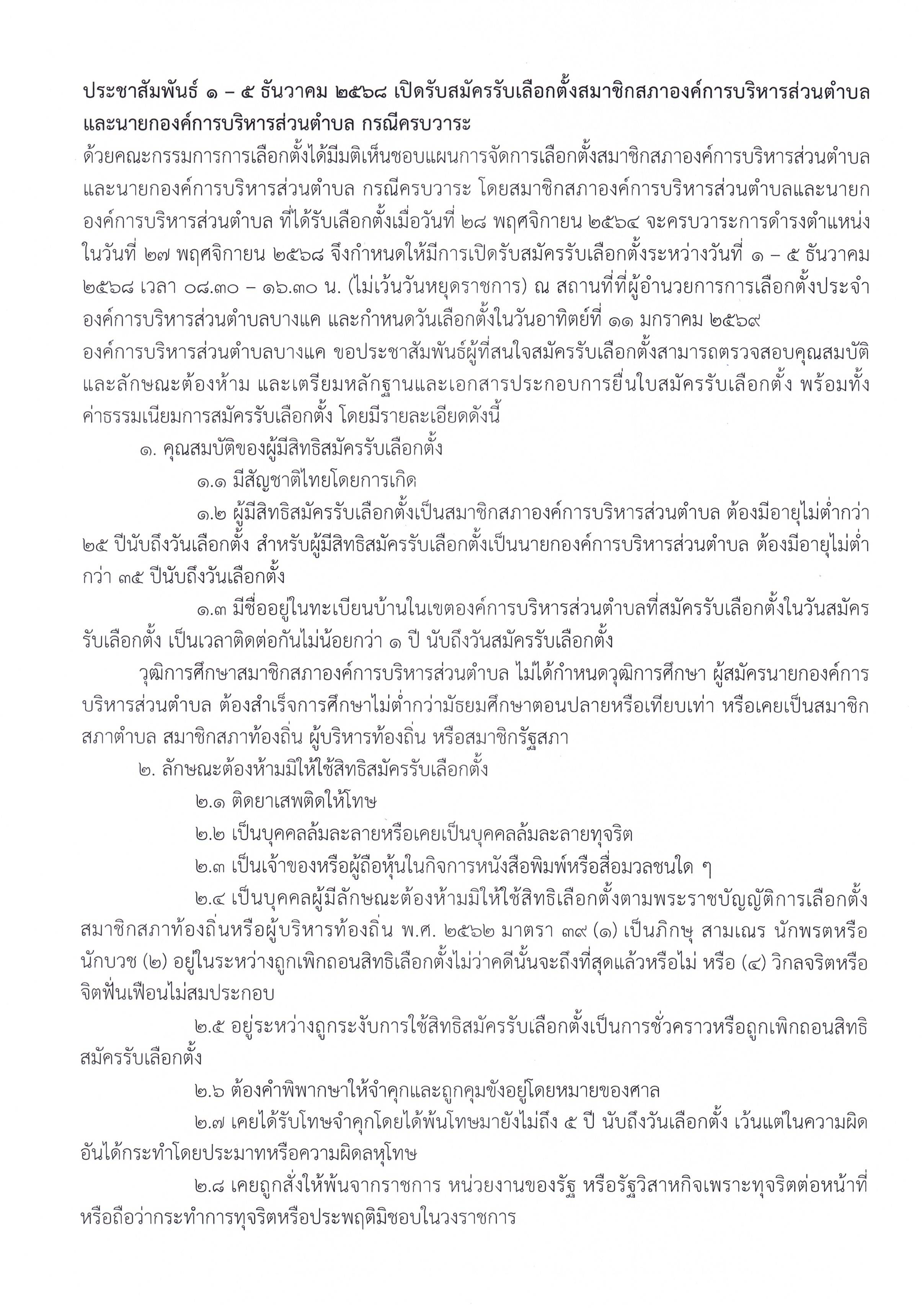 ประชาสัมพันธ์เปิดรับสมัครรับเลือกตั้งสมาชิกสภา อบต.และนายกอบต.กรณีครบวาระ
